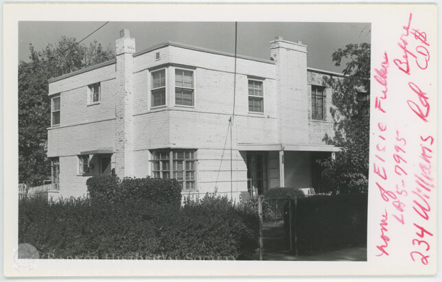 234 Williams Road, Garrett Hill. Handwritten note reads, “Home of Elsie Fuller before CD (community development) $”.