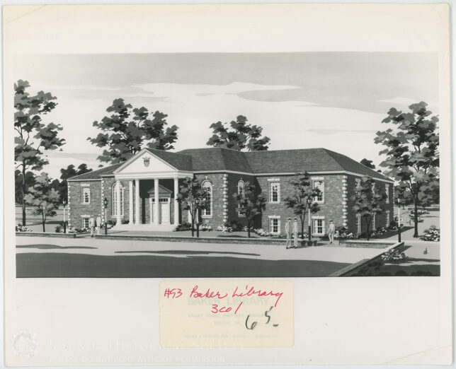 Architectural rendering of Baker Library at Valley Forge Military Academy, Wayne. Credited to architect Gilles J. Hughes, AIA.