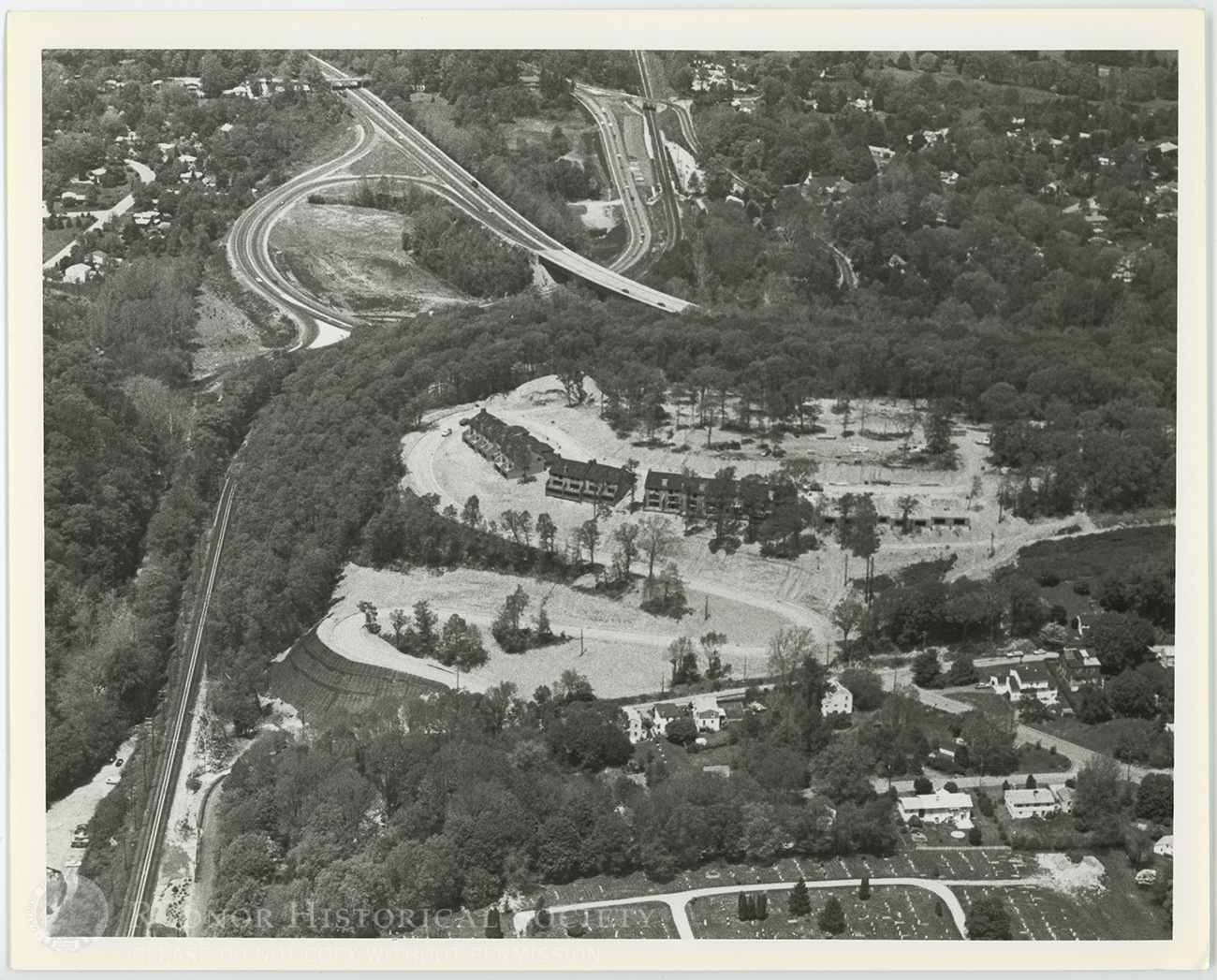 Aerial view looking north toward the Rebel Hill townhouse complex and the Schuylkill Expressway interchange.