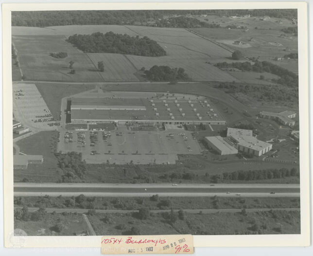 Aerial view of a Burroughs office building.