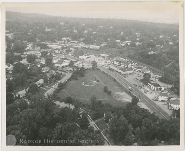 Aerial view of downtown Berwyn, looking west toward a field that became the Berwyn Shopping Center.