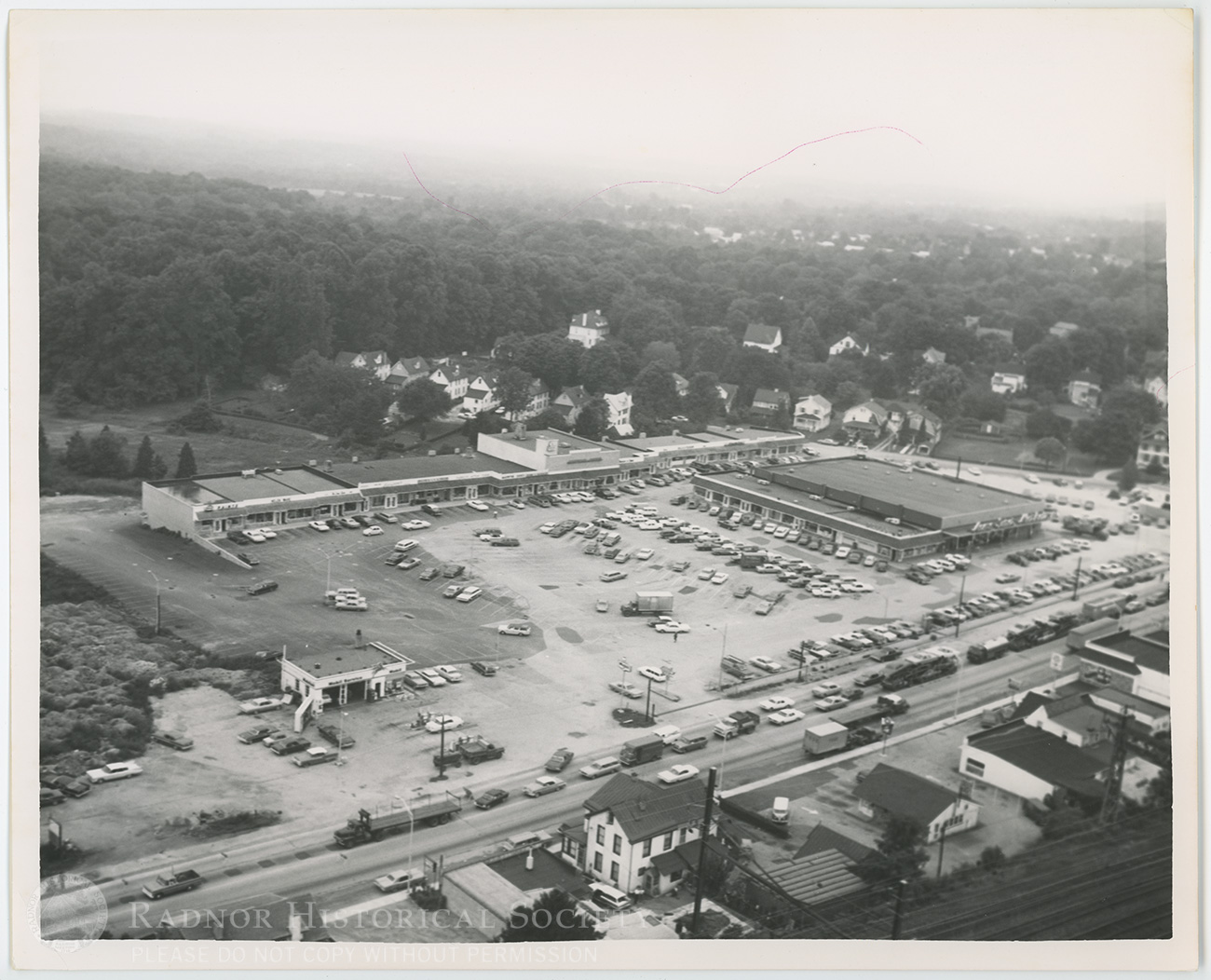Aerial view of the Paoli Shopping Center, looking southwest from Lancaster Avenue.