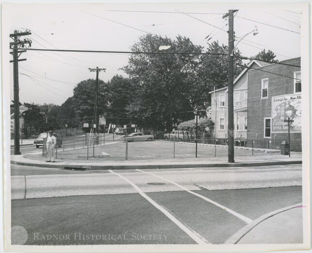 Caption reads, “The new parking lot, which will accommodate 11 cars, is located at the busy intersection of Bryn Mawr avenue and County Line road.”