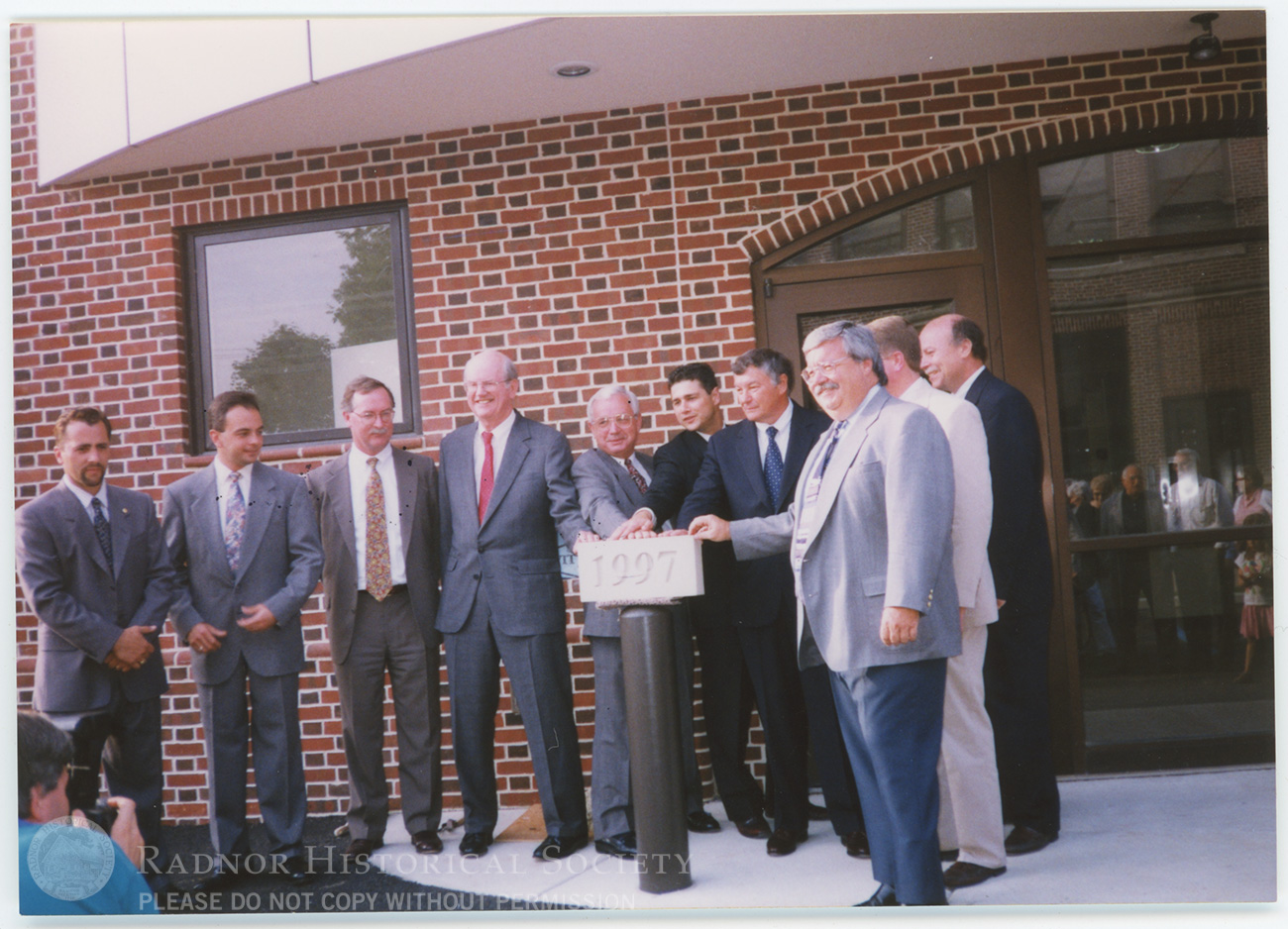 Officials from Radnor Township and the Radnor Fire Company at a ceremony dedicating the new fire house.