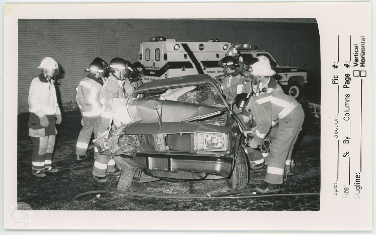 Radnor firefighters conduct a car rescue demonstration in front of the fire house on South Wayne Avenue.