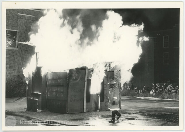 Radnor firefighters conduct a building fire demonstration in front of the fire house on South Wayne Avenue during the 1981 open house.