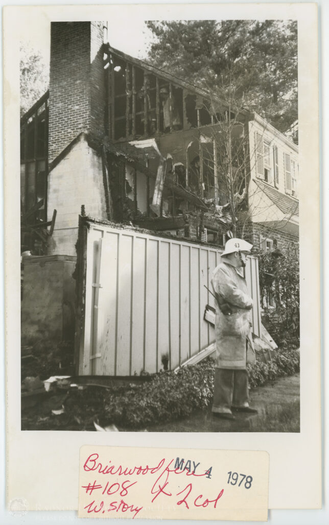 A Radnor firefighter following a residential fire on Briarwood Road.