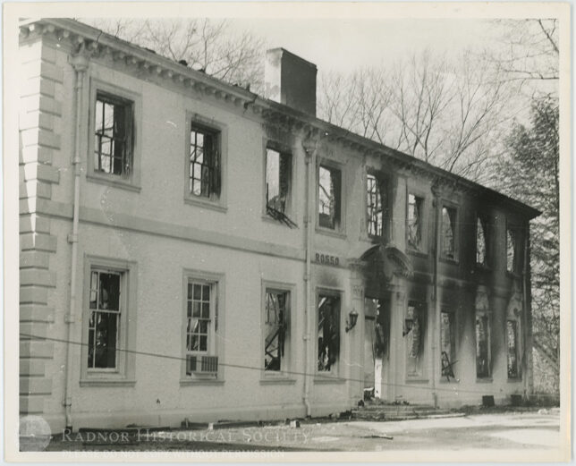 Valley Forge Military Academy’s Rosso Hall (formerly “Woodcrest Lodge”), severely damaged by fire.
