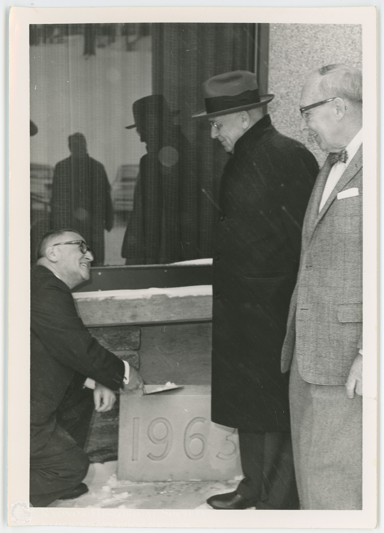 Radnor Township officials installing the datestone of the new Township Building, 1963.
