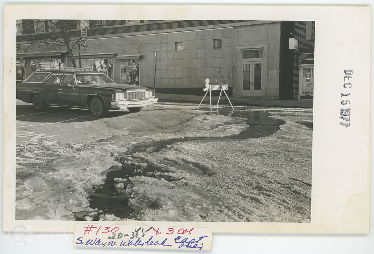 Car approaching a blocked, ice-covered South Wayne Avenue, Wayne.