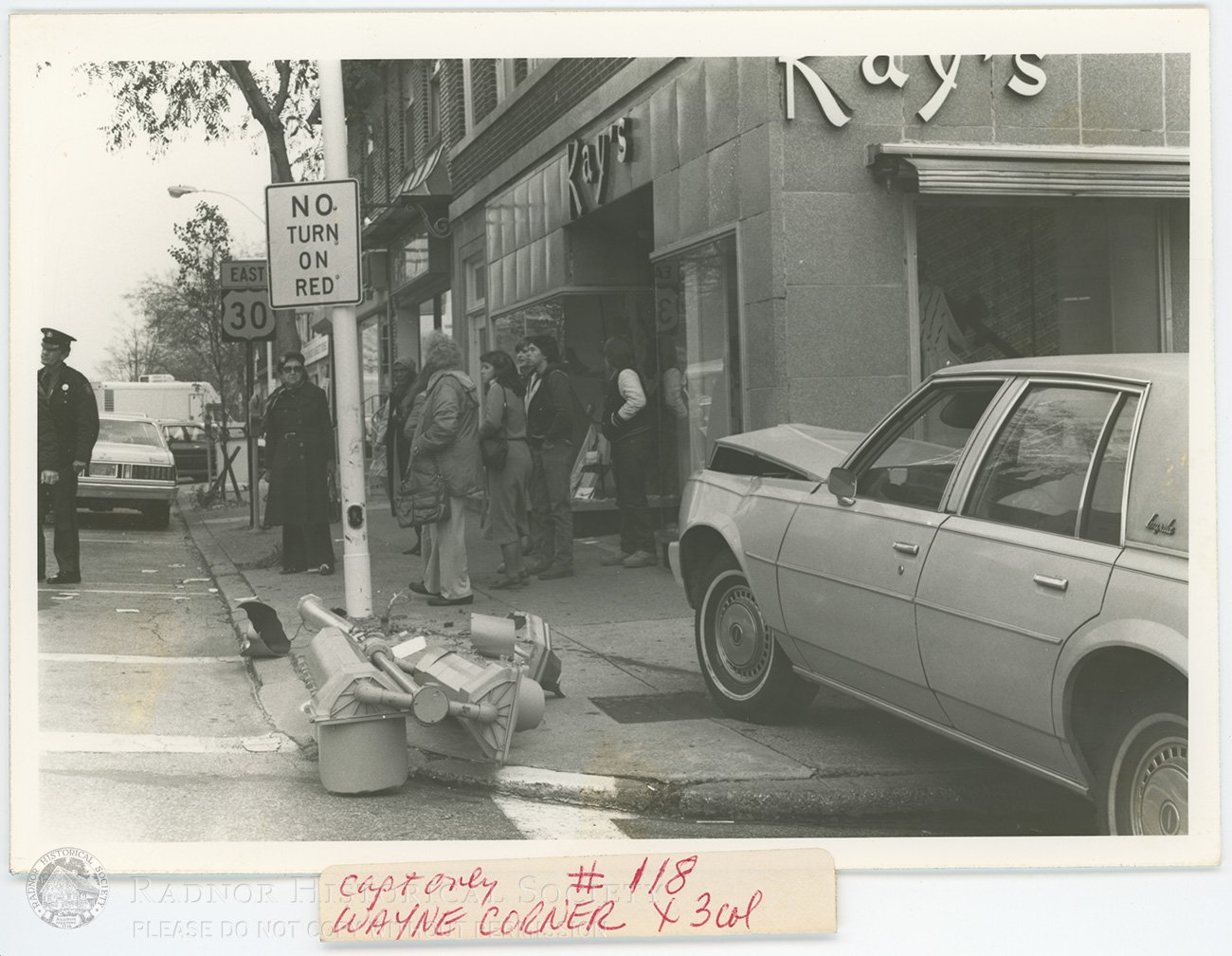 After an accident in which a car hit a traffic light at the southeast corner of South Wayne and East Lancaster Avenues.