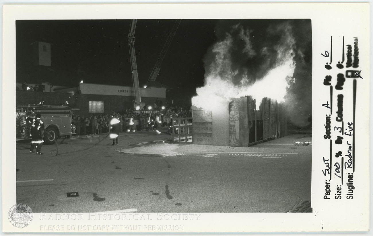 A structure burns during a demonstration fire at the Radnor Fire Company.