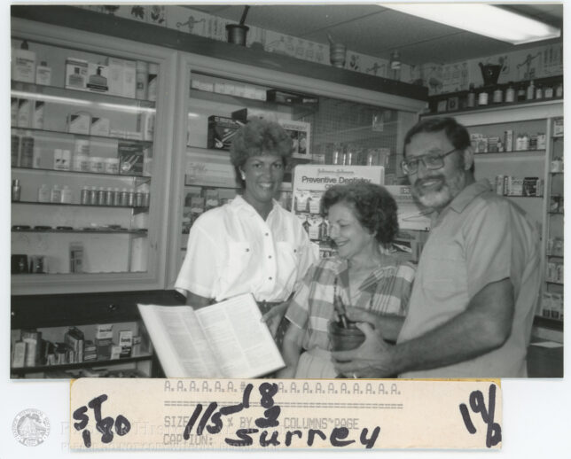 Individuals discussing plans for Surrey Services’ October Health Fair at Yorke Apothecary in Wayne.