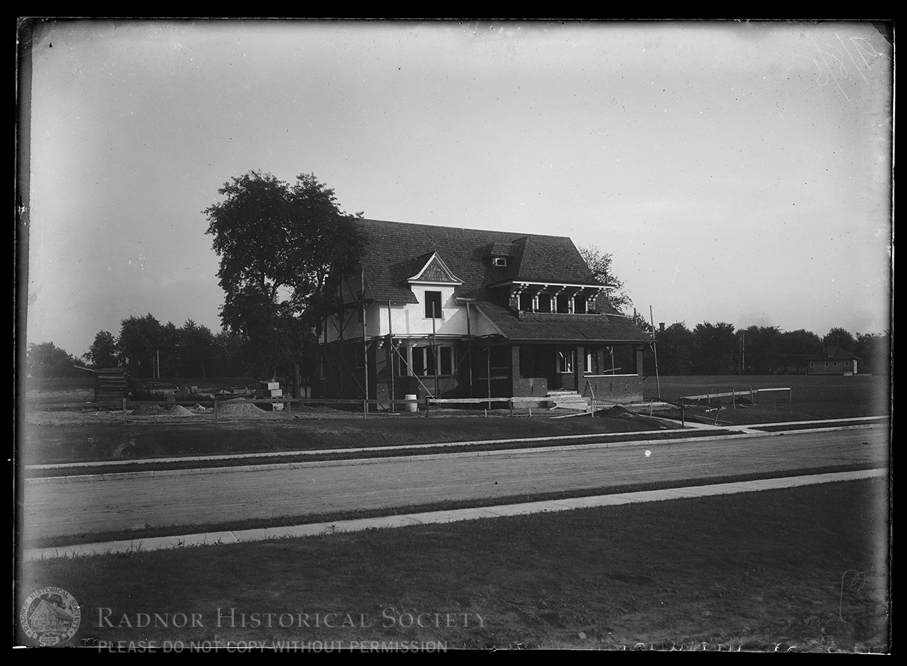 View of the residence at 517 Manor Road, Wynnewood as it was under construction. Written on paper sleeve: “Manor Road Mr Starkloof House Wynnewood 9/8/05”