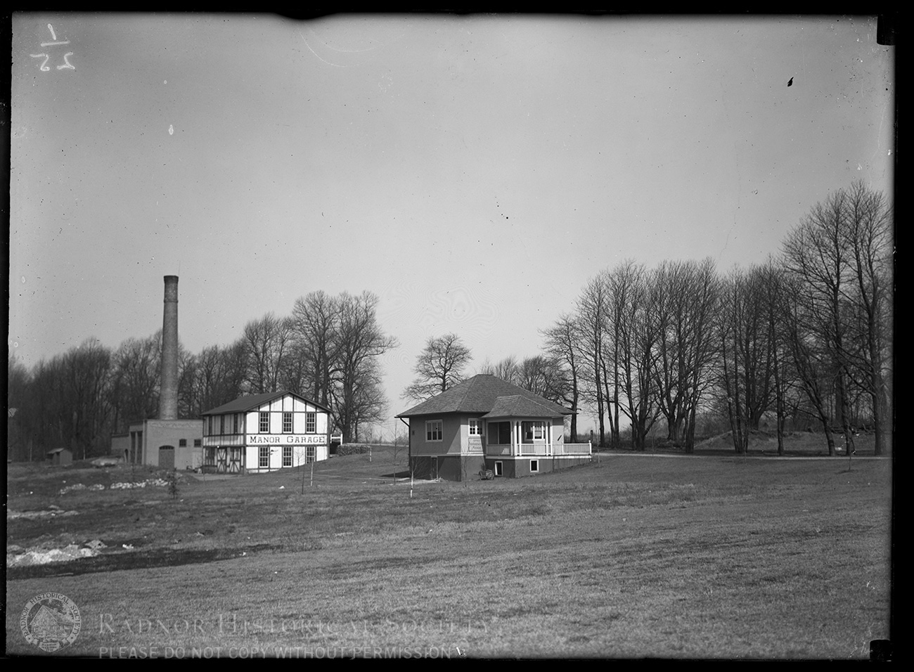 The real estate office and garage of Wynnewood Manor located on Manor Road, Wynnewood. Written on paper sleeve: “Office, Garage & Steam plant 3/14-1910”