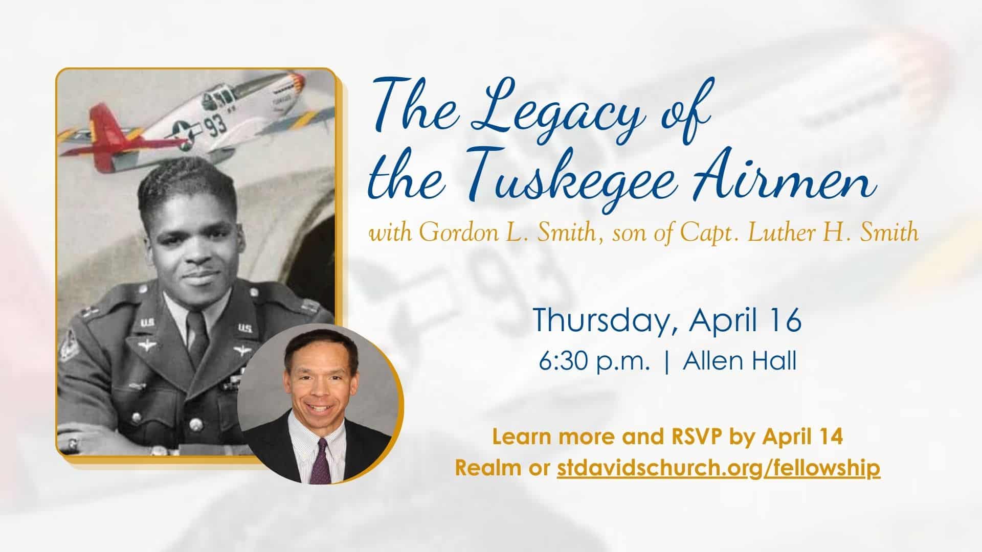 During WWII, the Tuskegee Airmen (sometimes known as “Red Tails”) broke barriers as the first African American military aviators, overcoming segregation and discrimination to fly over 15,000 missions and earn more than 150 Distinguished Flying Crosses. The 332nd Fighter Group, including Capt. Luther H. Smith, achieved the lowest bomber loss rate of any escort group in the war–cementing their legacy as heroes who paved the way for military integration and greater racial diversity in America. Executive Director at JPMorgan and son of Capt. Luther H. Smith, Gordon Smith brings this history to life with anecdotes from Captain Smith’s 133 combat missions. Gordon will describe the discrimination his father faced and his perseverance to become a decorated pilot.